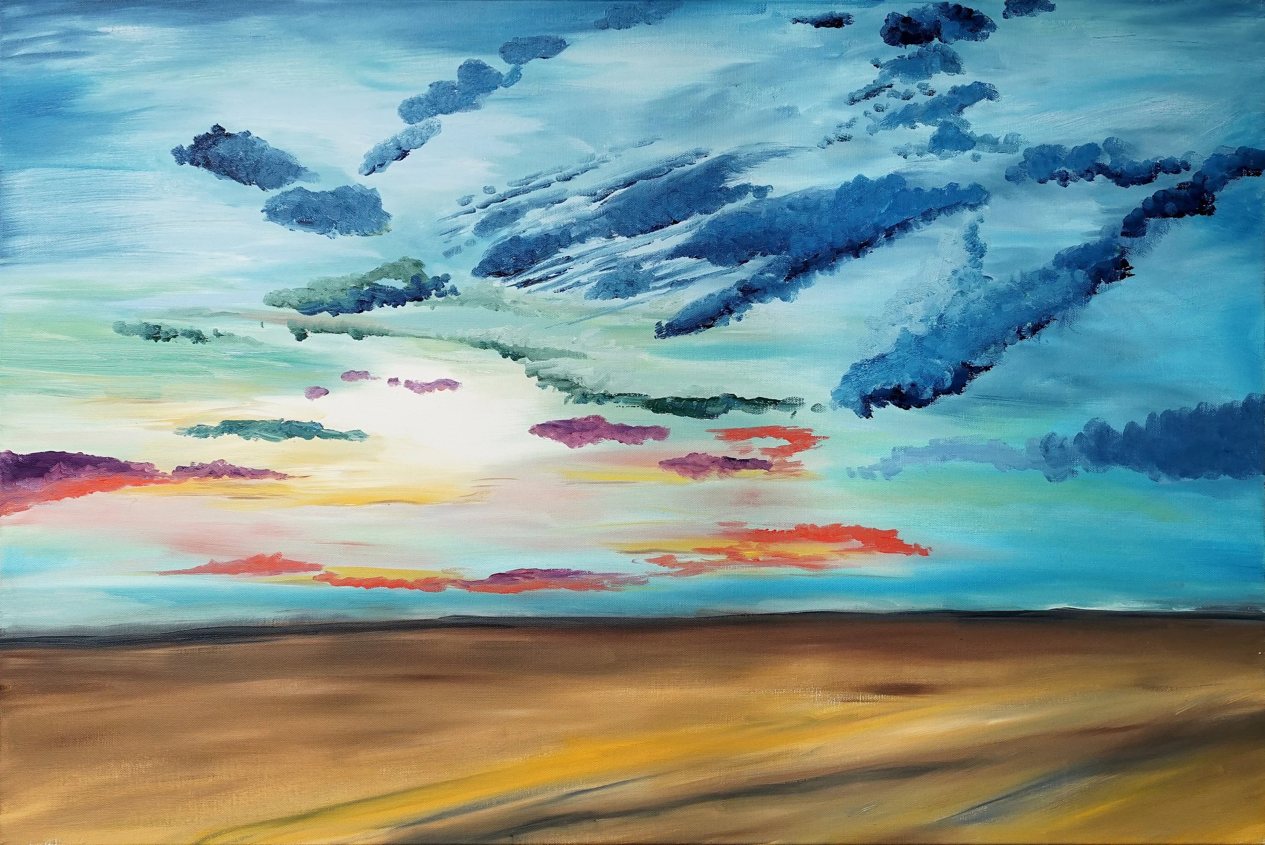 The creation of this work began in the panhandle of TX on the Richards family Ranch. As a family we would often go out to check the cattle, have a picnic and shoot guns. The land is vast and wide. It is windy and the clouds move often in contrasting directions. The dust and light create amazing colors in the dusk skies.